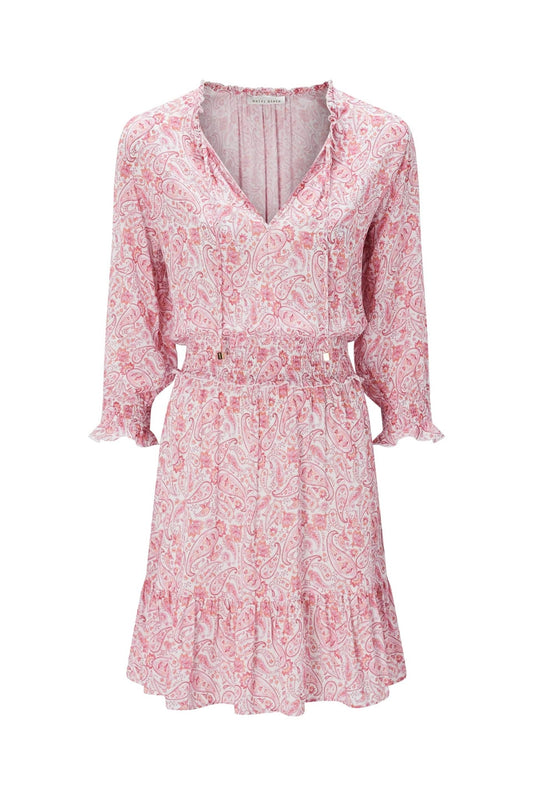 Muskmelon Bay Smocked Waist Tiered Mini Dress In Pink