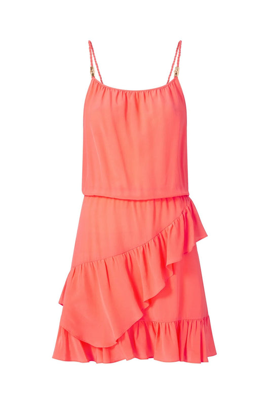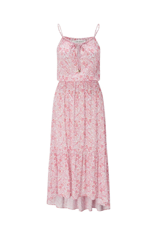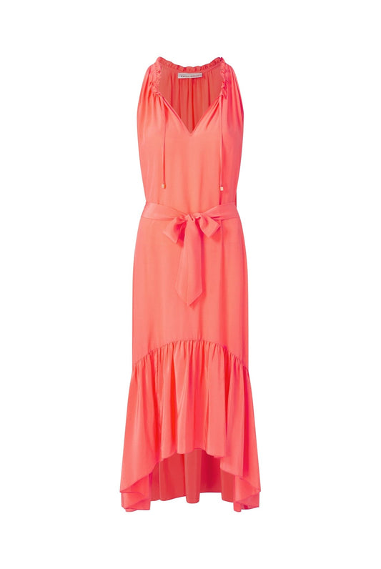 Muskmelon Bay Tie-Front Frill Midi Dress In Pink