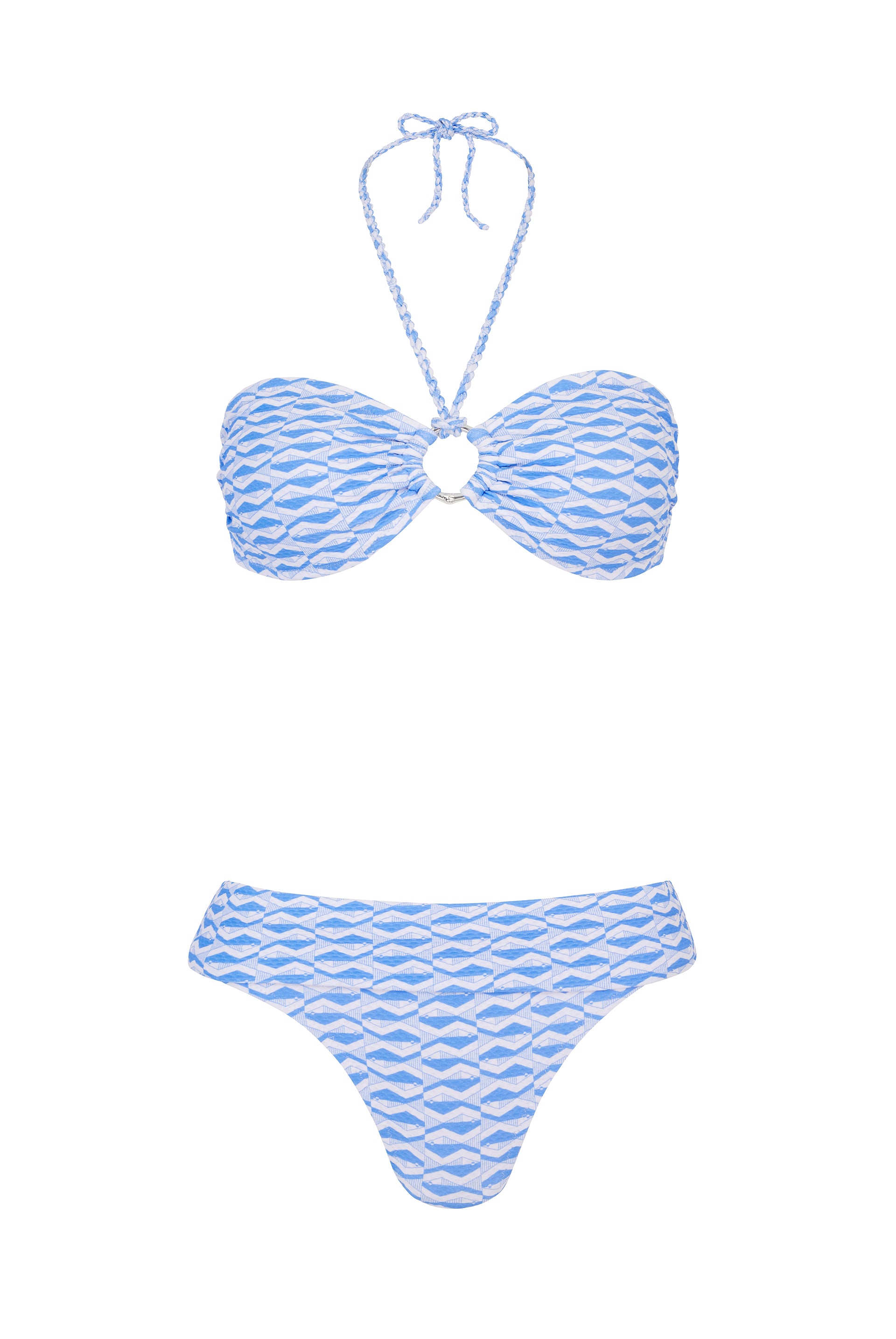 The Tinos ring bandeau bikini can be worn strapless or with a rope tie, paired with a matching foldover bottom for effortless support and coverage.