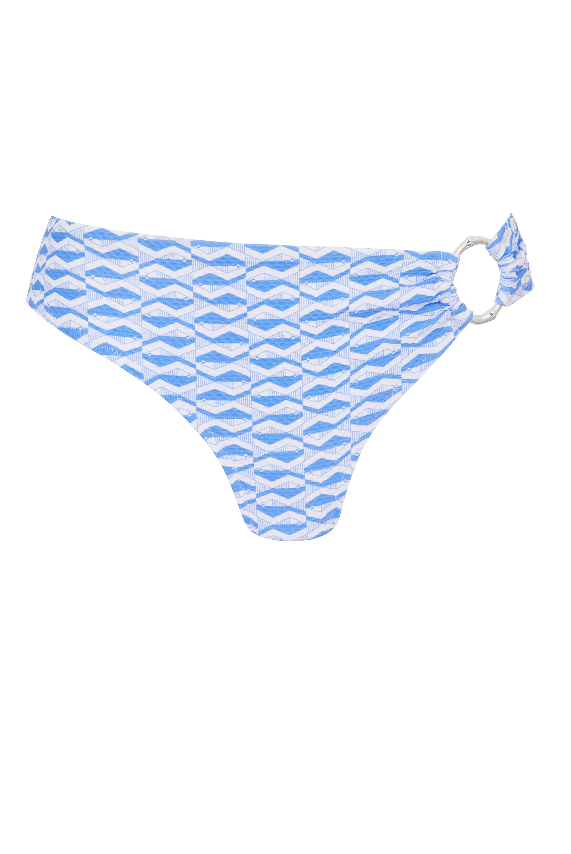 The Tinos ring hipster bikini bottom features a classic hipster silhouette, elevated with striking asymmetric gold bamboo hardware for a refined, elegant finish.